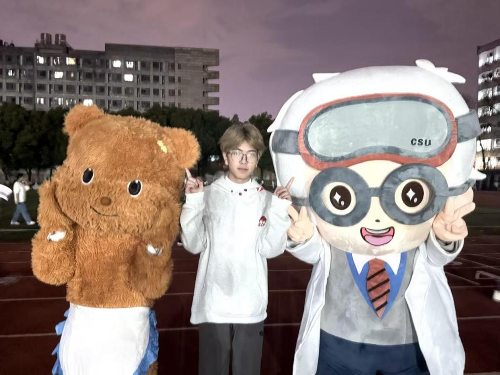 当晚18:30,身着粉大冶定制玩偶服的心助会干事准时亮相操场指定区域。憨态可掬的软萌玩偶一出场,便成为夜色中的焦点,它们或挥手致意,或缓步穿行,主动向过往同学传递善意。不少同学起初带着些许羞涩驻足观望,在玩偶温柔又热情的互动下,渐渐放下拘谨,欣然张开双臂相拥。无需言语的拥抱,悄然消融学业疲惫与心灵隔阂;随机派发的糖果,甜润舌尖,更温暖心田。
