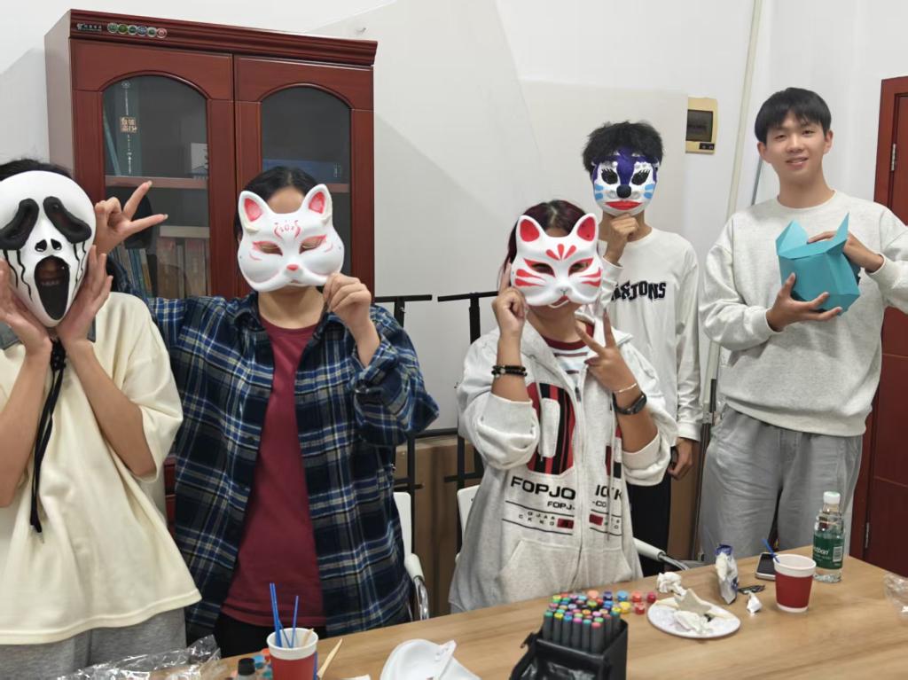 同学们在面具创作中,悄然卸下了表达的心理负担,尽情且自由地释放内心的情绪。同学们积极主动地与周边同学交流创作心得,在思想的碰撞中努力与他人相互理解、达成情感共鸣。在工作人员的精心组织和参与同学的热情投入双重努力下,此次“假面派对”活动为大家留下了一段充满创意与温暖的美好回忆。