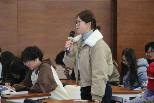 在互动环节,同学们围绕课余生活、发展规划、科研学习等话题踊跃提问,李专教授结合自身经验一一作答。在谈及身心健康时,他以自己跑步和游泳的爱好为例,鼓励大家养成终身锻炼的习惯,并希望同学们能够始终保持求知热情、积极直面各类挑战、要勤于静思做到沉淀自我。